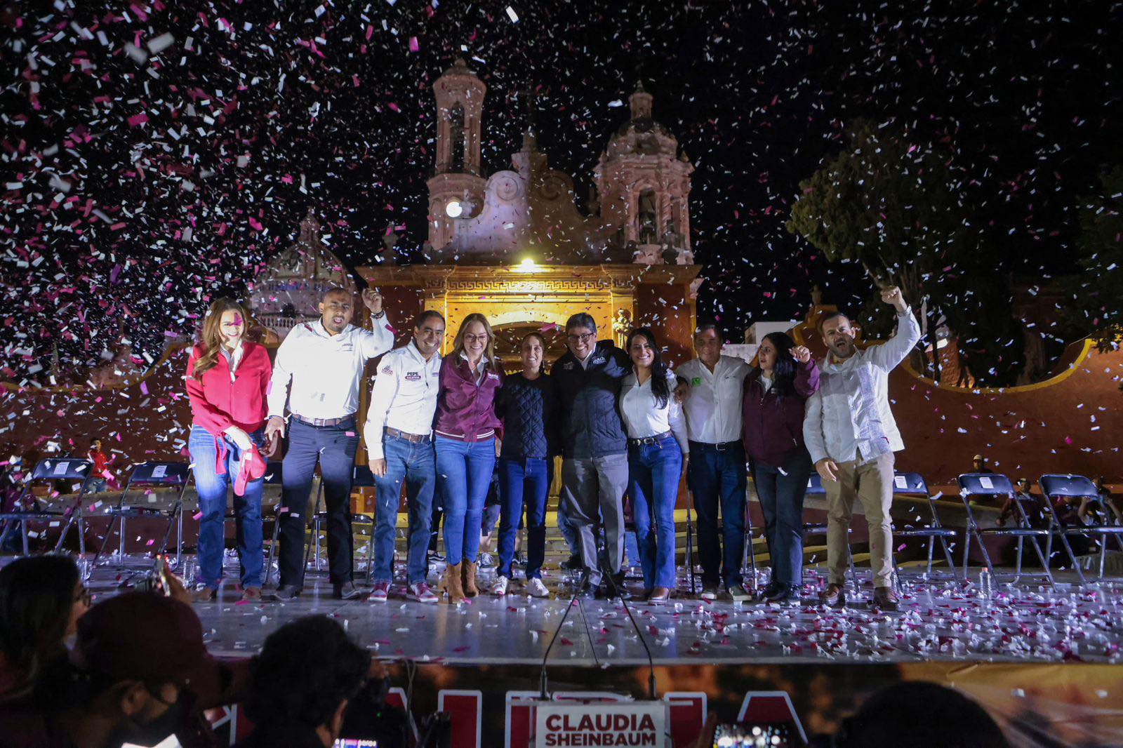 Claudia Sheinbaum estuvo acompañada en Guadalupe, Zacatecas, por Ana Luisa del Muro, candidata a Diputado Federal por el distrito 4; Pepe Zaldívar, candidato a la Presidencia Municipal de Guadalupe; Carlos Puente Salas, candidato a diputado plurinominal; Geovanna Bañuelos, candidata plurinominal al Senado; Néstor Núñez López, coordinador de la Segunda Circunscripción y Eli Cervantes Rojas, delegado estatal en Aguascalientes.