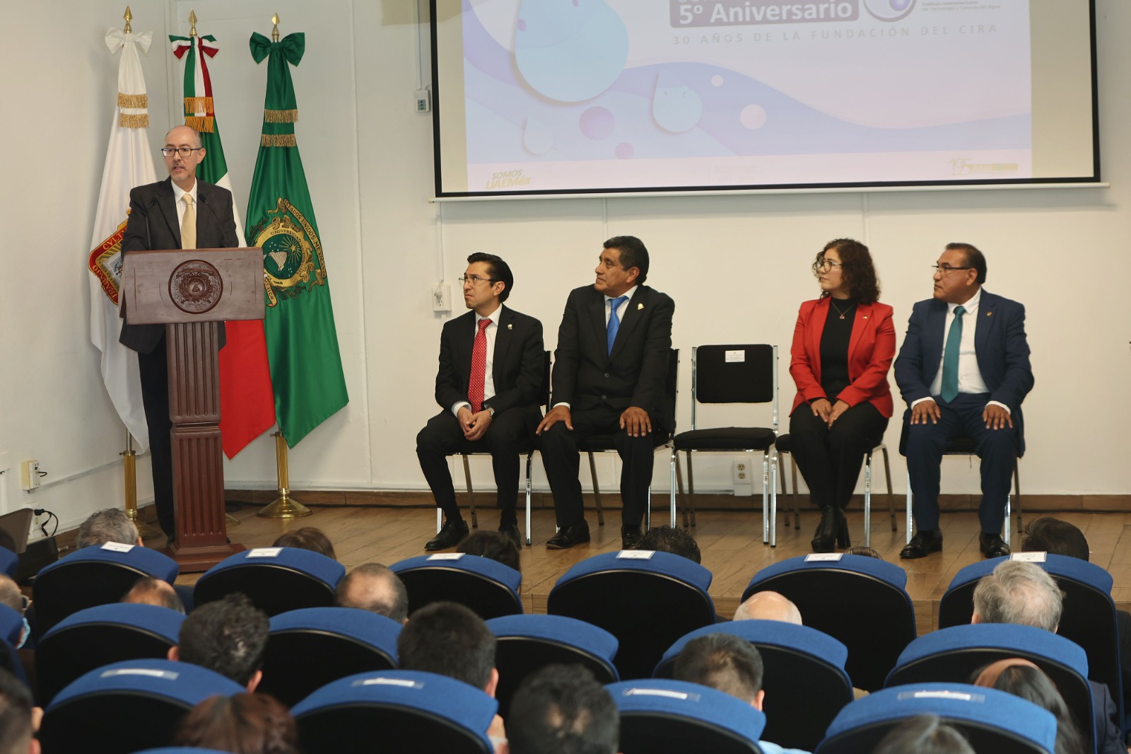 El rector de la Universidad Autónoma del Estado de México (UAEM), Carlos Eduardo Barrera Díaz, encabezó la conmemoración del 50 aniversario del Instituto Interamericano de Tecnologías y Ciencias del Agua (IITCA) y 30 años de la fundación del Centro Interamericano de Recursos del Agua (CIRA), perteneciente a la Facultad de Ingeniería.  El rector de la máxima
